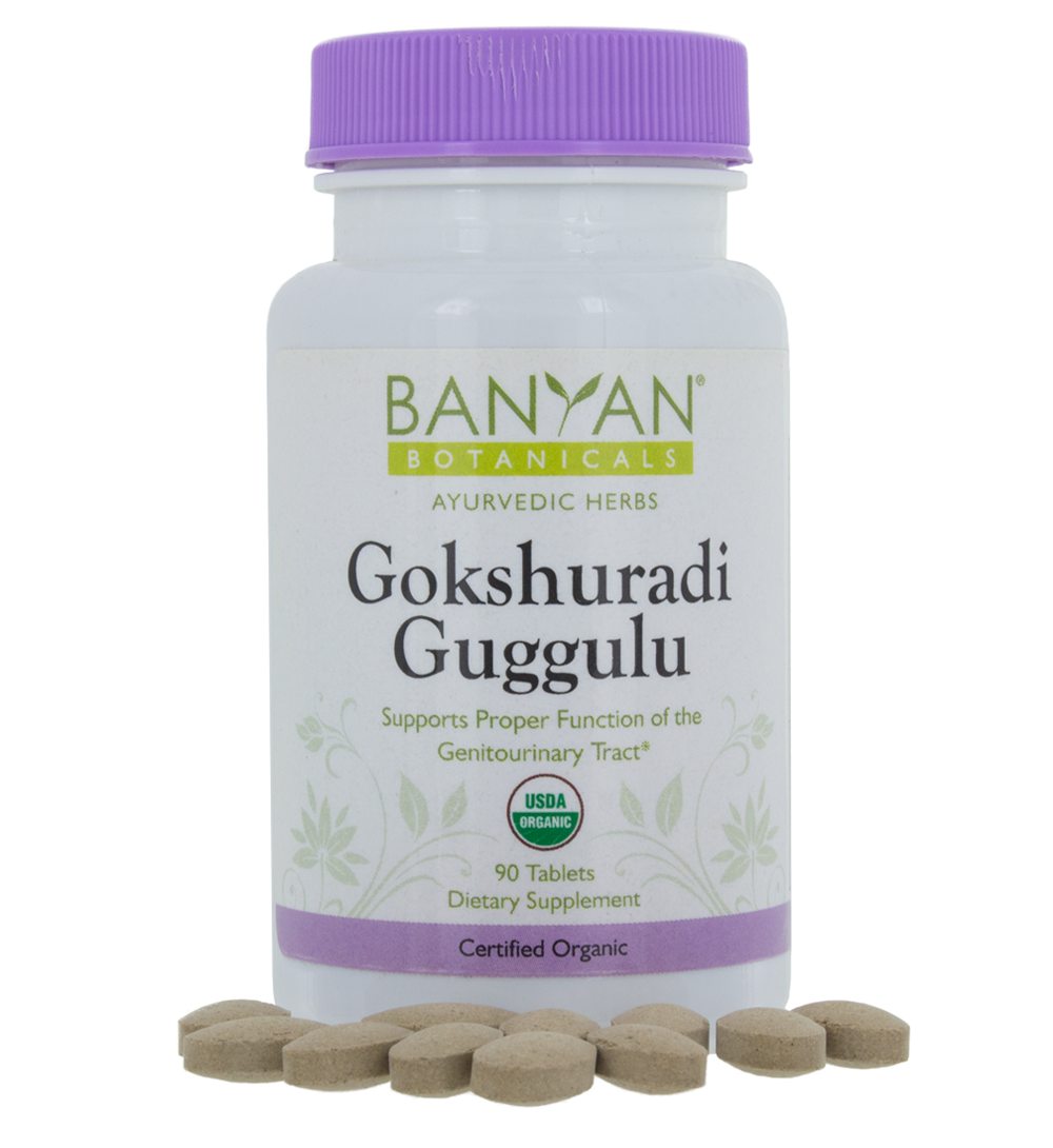 Gokshuradi Guggulu is a traditional Ayurvedic compound used to support the proper function of the genitourinary tract. It strengthens and tones the kidneys, bladder, and urethra as well as the reproductive organs. The main ingredient, gokshura, is renowned for its rejuvenating action on the kidneys and prostate. Combined with guggulu, triphala, and trikatu, it detoxifies the urinary system and supports healthy urinary composition. Balancing to all doshas, Gokshuradi Guggulu revitalizes the genitourinary system by calming vata, soothing pitta, and eliminating excess kapha.*